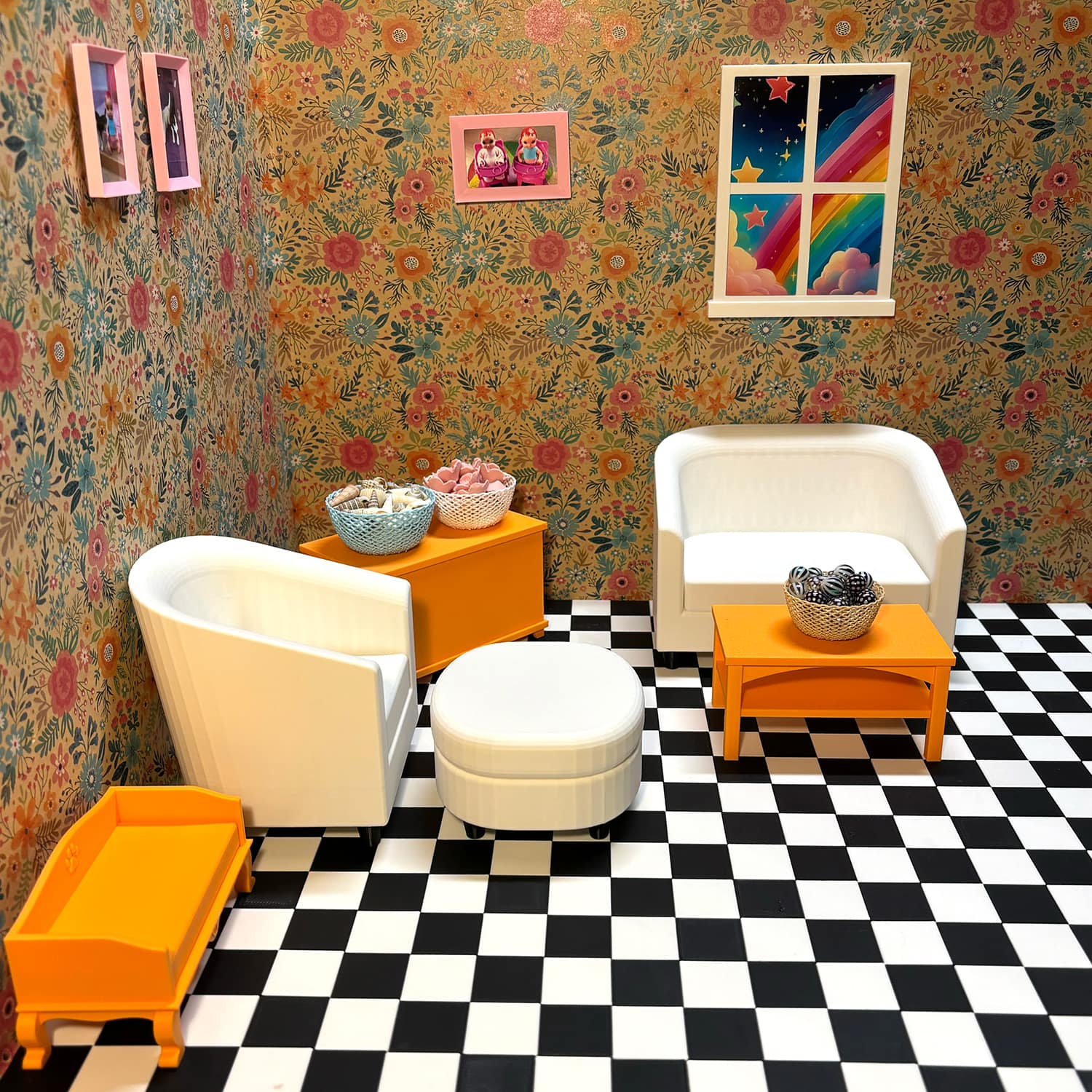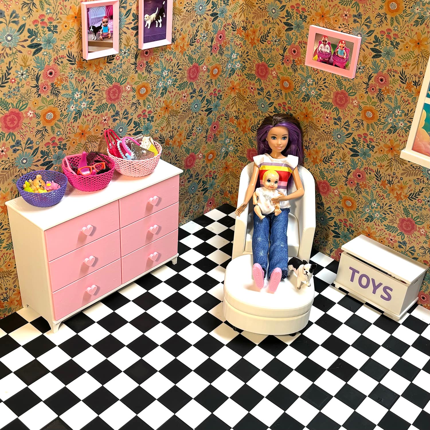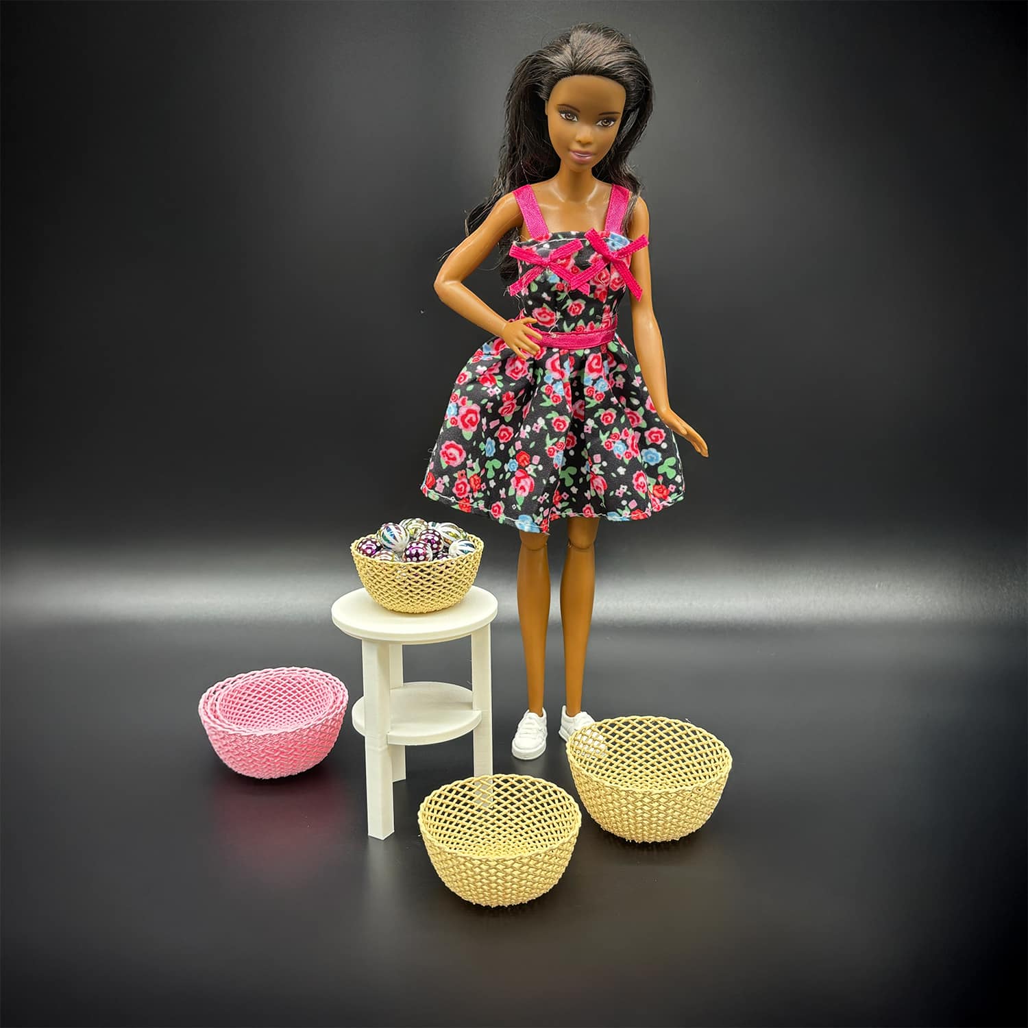 Barbie-size 3D printed baskets are made from PLA plastic, perfect for 11–12 inch fashion dolls. This miniature basket/organizer is ideal for dollhouse bedrooms, offices, classrooms, or living rooms, adding a realistic touch to your dioramas. Each basket is printed to order and available in your choice of color so you can match your doll’s style or your existing playset.