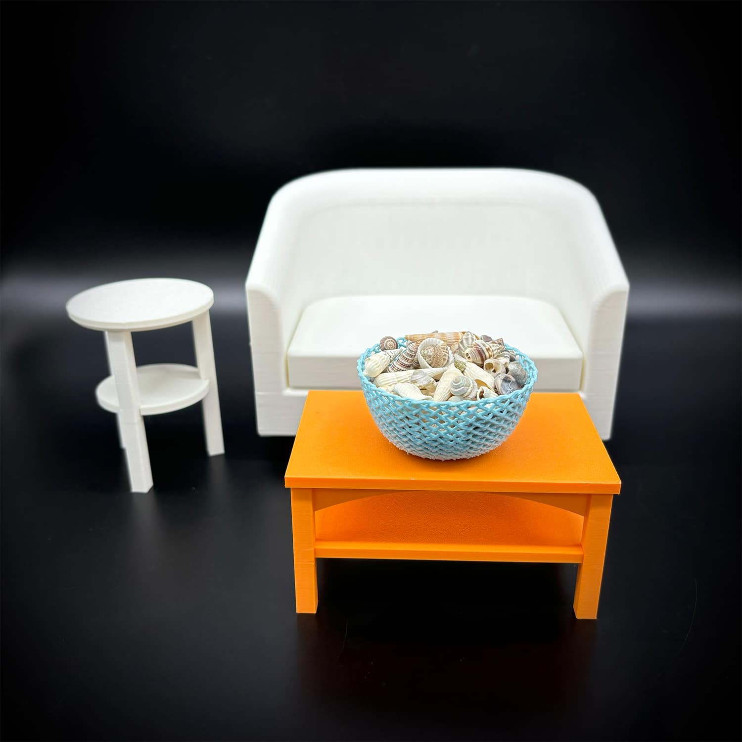 All of our furniture is imagined, designed and 3D printed in house using vibrant PLA Filament. PLA (polylactic acid) is an environmentally friendly plant-based biodegradable plastic. We strive to produce high quality prints using high end equipment but limitations in the print process may result in minor imperfections or blemishes on the finished product.