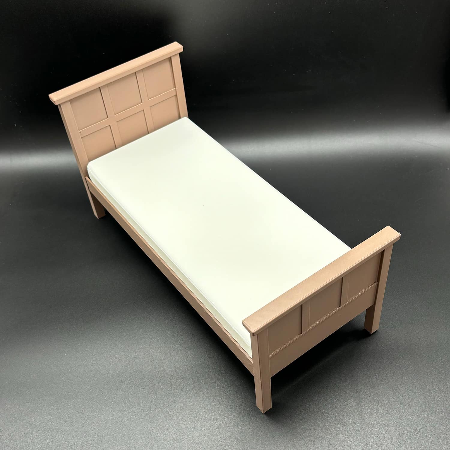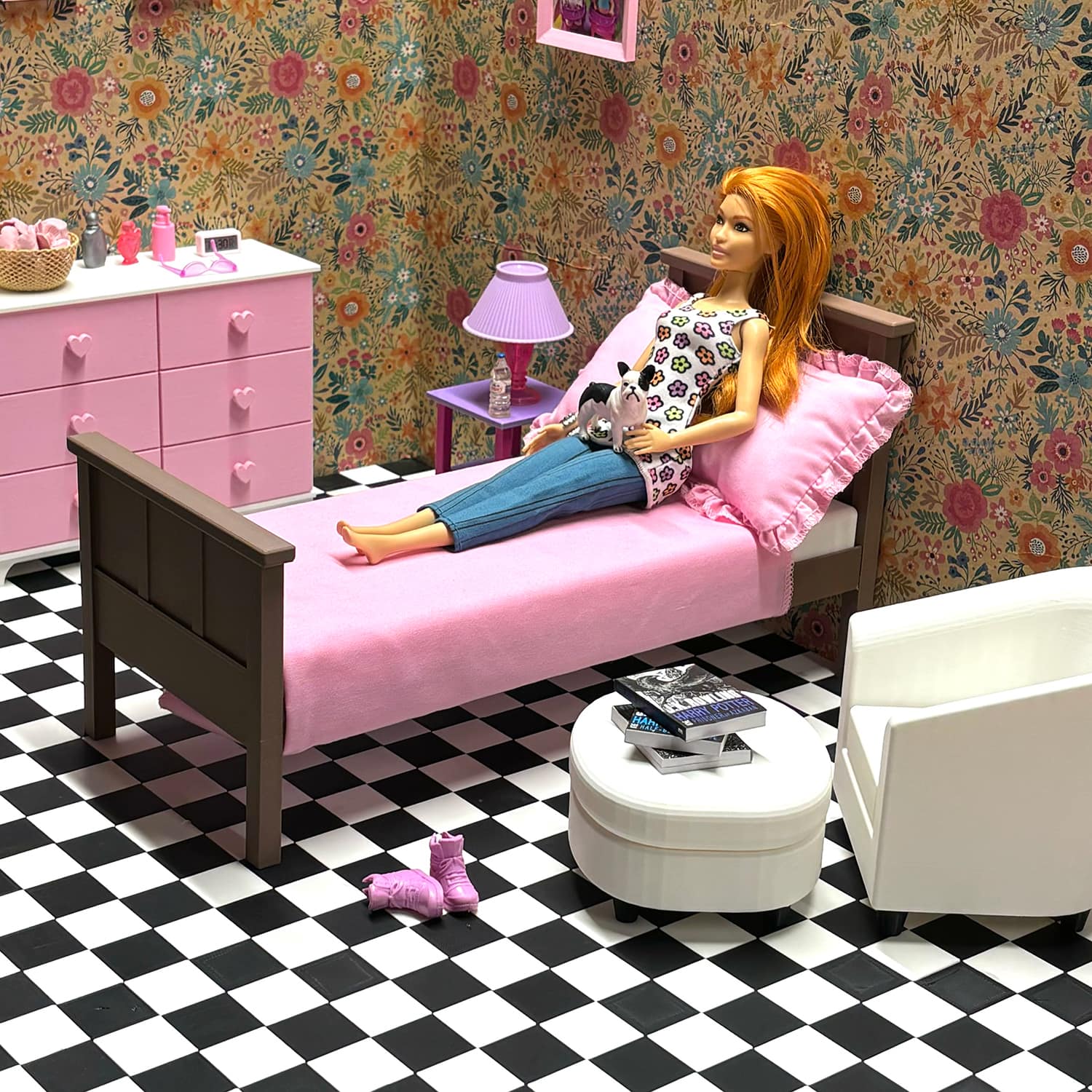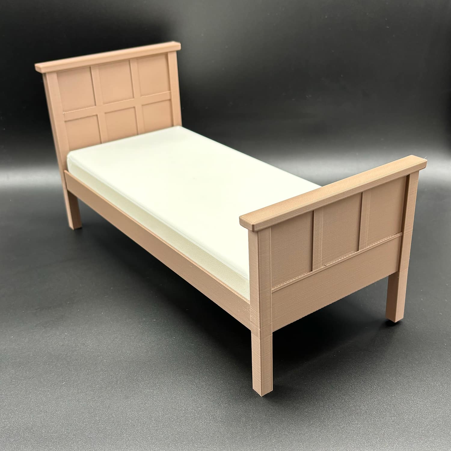 Create a cozy doll bedroom with this 1:6 scale bed, sized to fit Barbie-sized and similar 11–12 inch fashion dolls. The bed is 3D printed in high‑quality PLA for a lightweight yet sturdy frame kids can play with every day. Clean modern lines make it easy to mix with any dollhouse decor. You can select either the frame only or the frame with mattress. Bedding and dolls are not included so you can style the bedroom your own way. Ideal as a unique handmade gift and an affordable way to add realistic furniture to any Barbie‑scale bedroom setup.