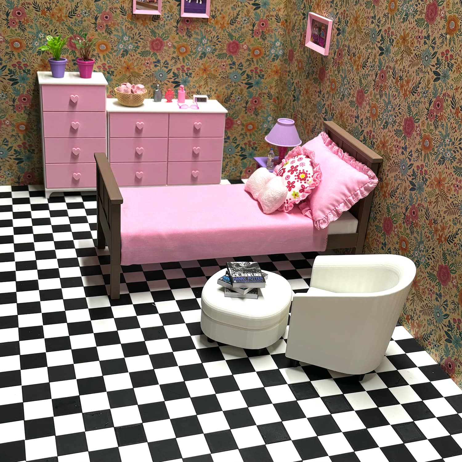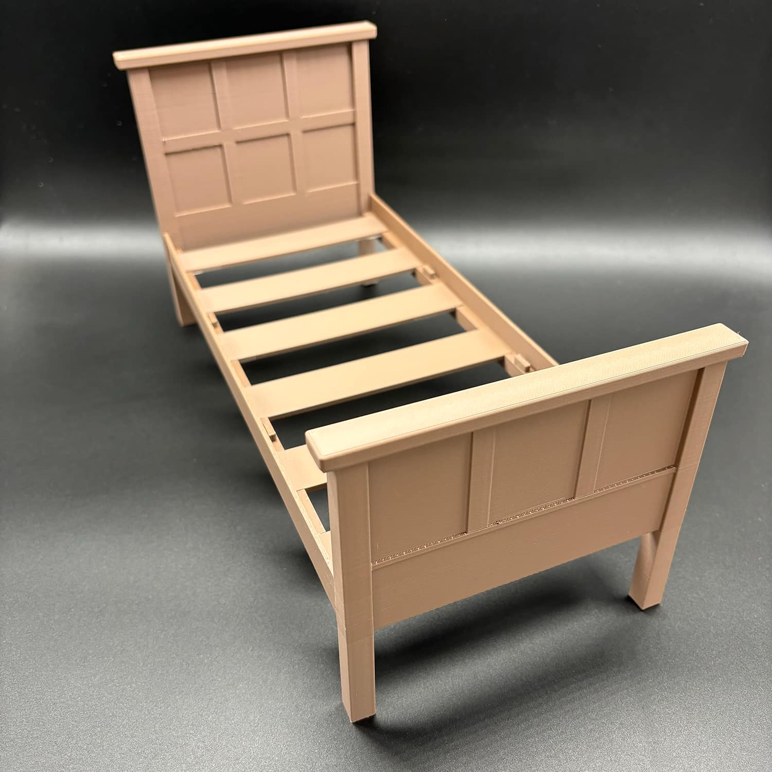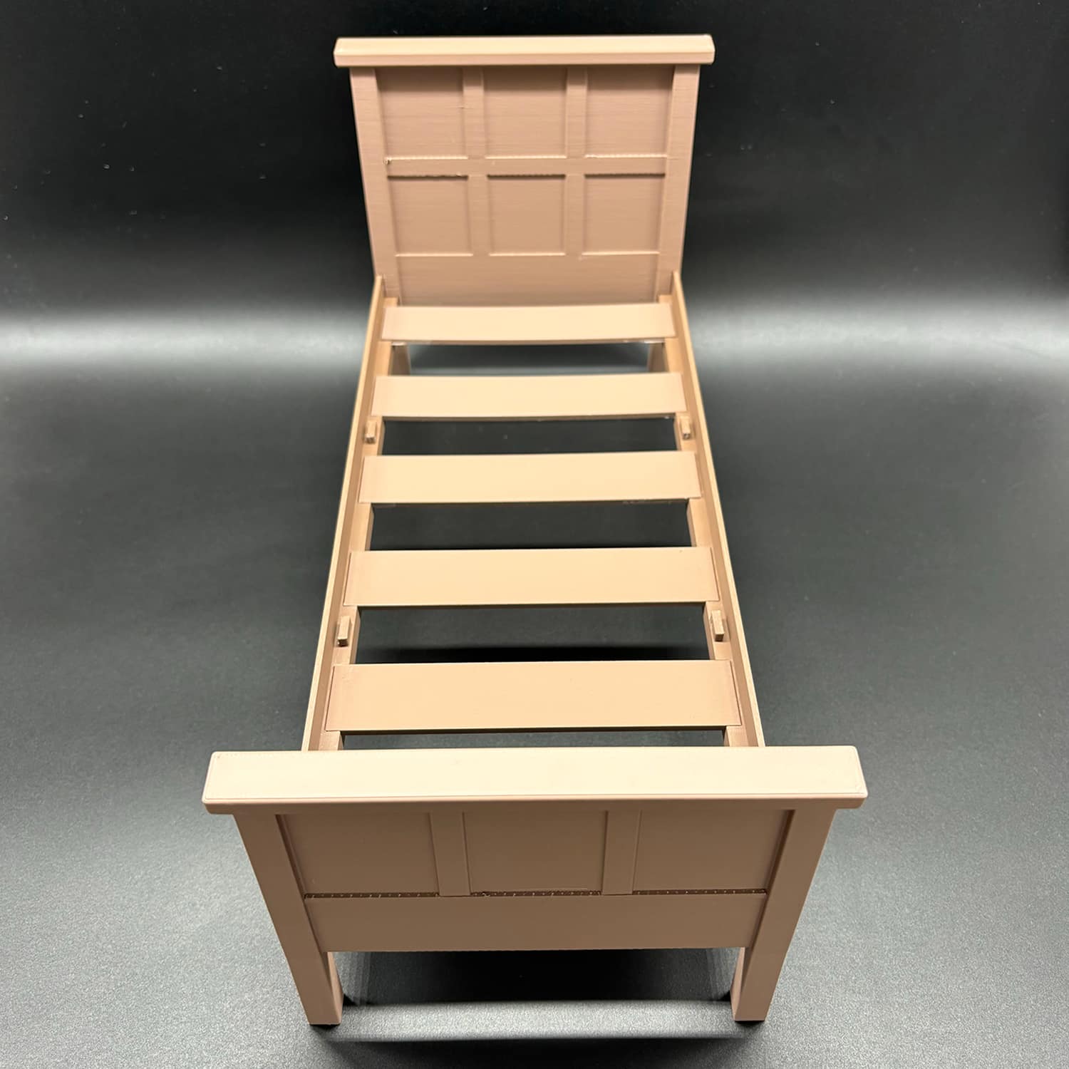 Create a cozy doll bedroom with this 1:6 scale bed, sized to fit Barbie-sized and similar 11–12 inch fashion dolls. The bed is 3D printed in high‑quality PLA for a lightweight yet sturdy frame kids can play with every day. Clean modern lines make it easy to mix with any dollhouse decor. You can select either the frame only or the frame with mattress. Bedding and dolls are not included so you can style the bedroom your own way. Ideal as a unique handmade gift and an affordable way to add realistic furniture to any Barbie‑scale bedroom setup.