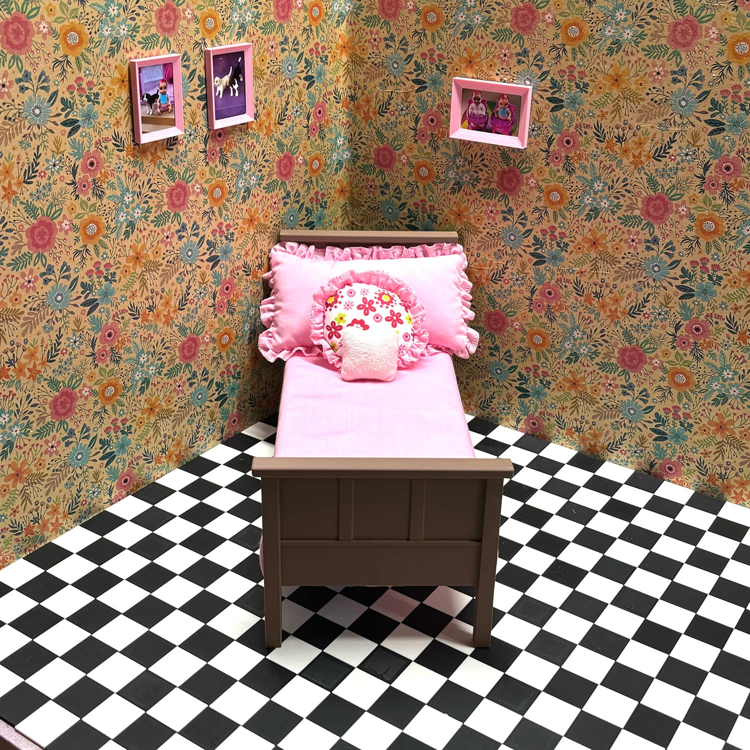 This adorable 1/6 scale bed is perfect for Barbie-sized + other 11″ – 12″ fashion dolls like Blythe, LOL OMG and Rainbow High dolls. Bed comes fully assembled. This bed is available in frame only or frame and white mattress.