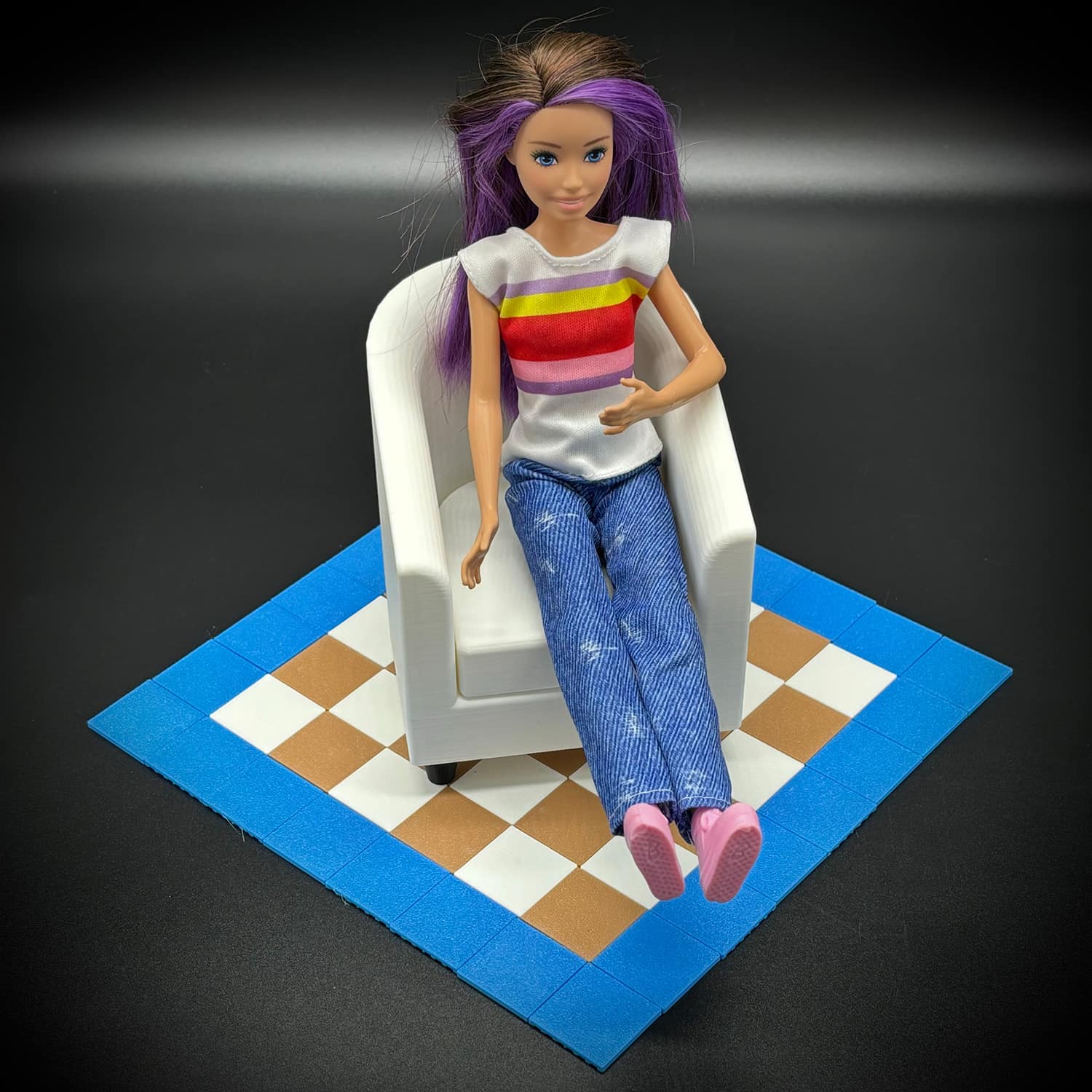 Barbie-sized dolls will love these stylish 3D printed floor tiles, perfect for upgrading any dollhouse room or Barbie-scale Dreamhouse scene. Crafted in durable PLA plastic, each of these floor tiles features a smooth, detailed surface that mimics real flooring and creates a polished, modern look for your doll’s space. Tiles are lightweight yet sturdy for everyday play, and can be arranged to cover small areas or an entire room. They are printed in the color of your choosing to match your Barbie-scale decor theme. Ideal for dioramas, room makeovers, and imaginative play setups.