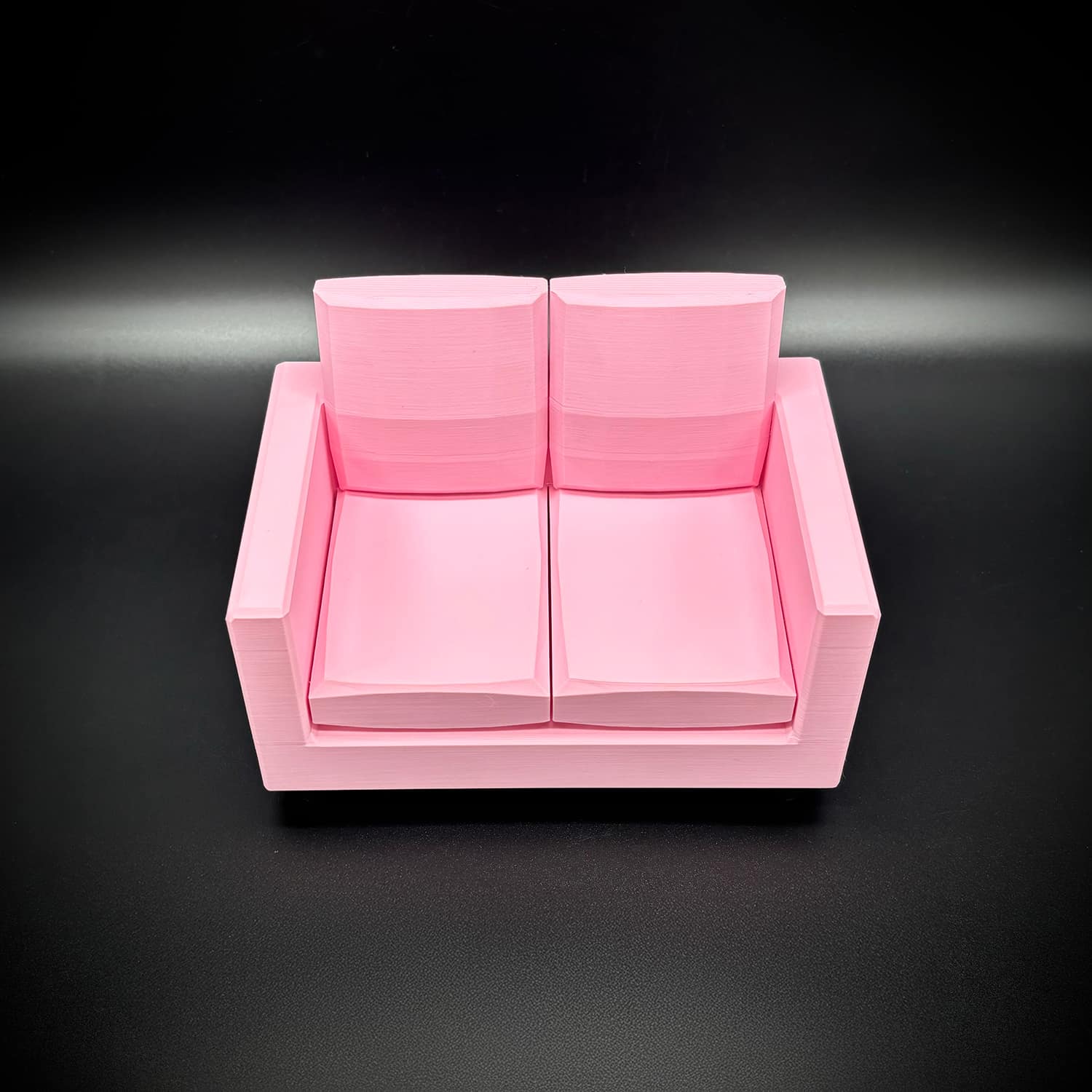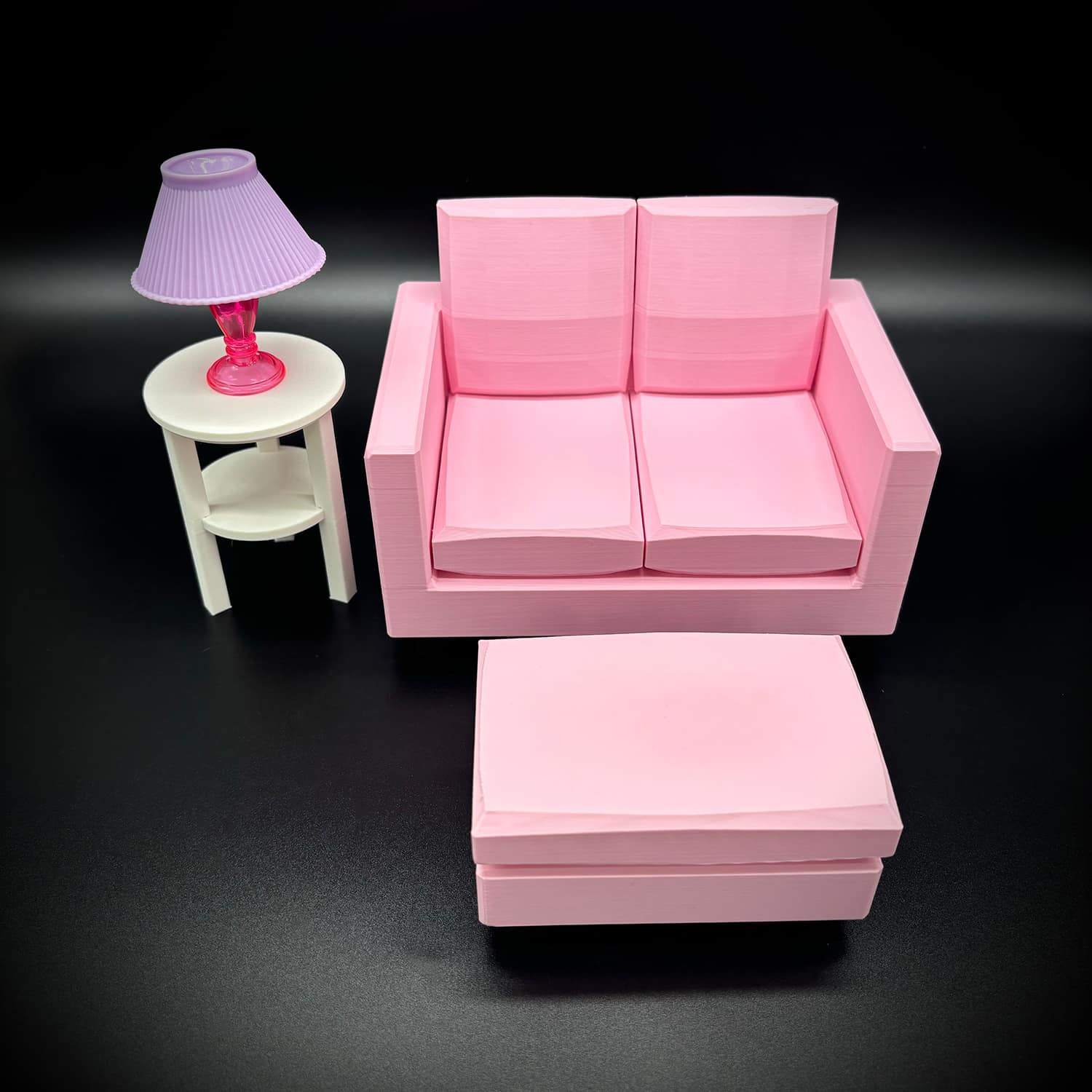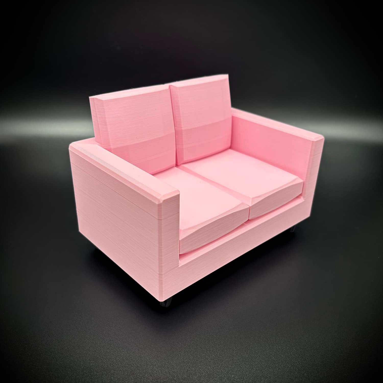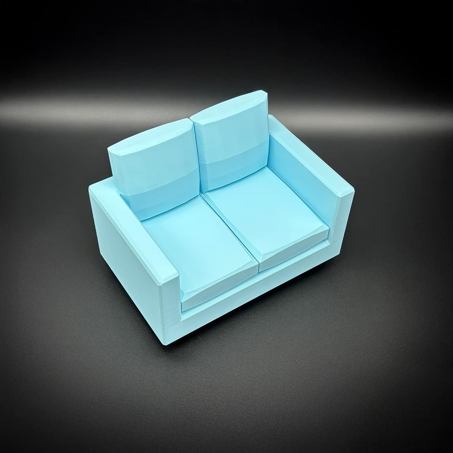 Crafted with meticulous attention using high-quality PLA filament it boasts a compact yet cozy design. Wide enough to comfortably seat two Barbie-sized dolls side-by-side. It mimics a classic loveseat profile, complete with supportive armrests and a gently sloped backrest for realistic reclining.