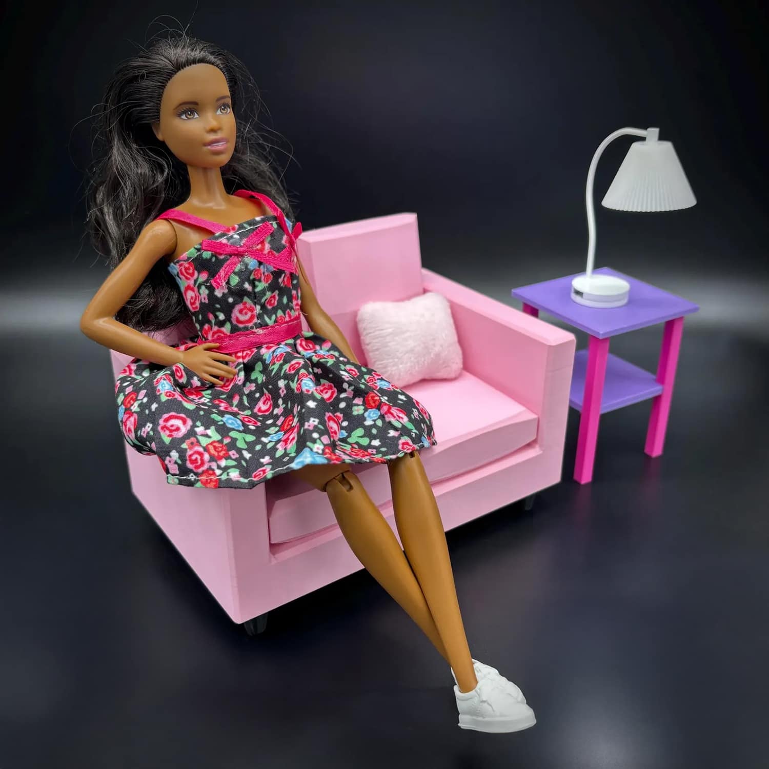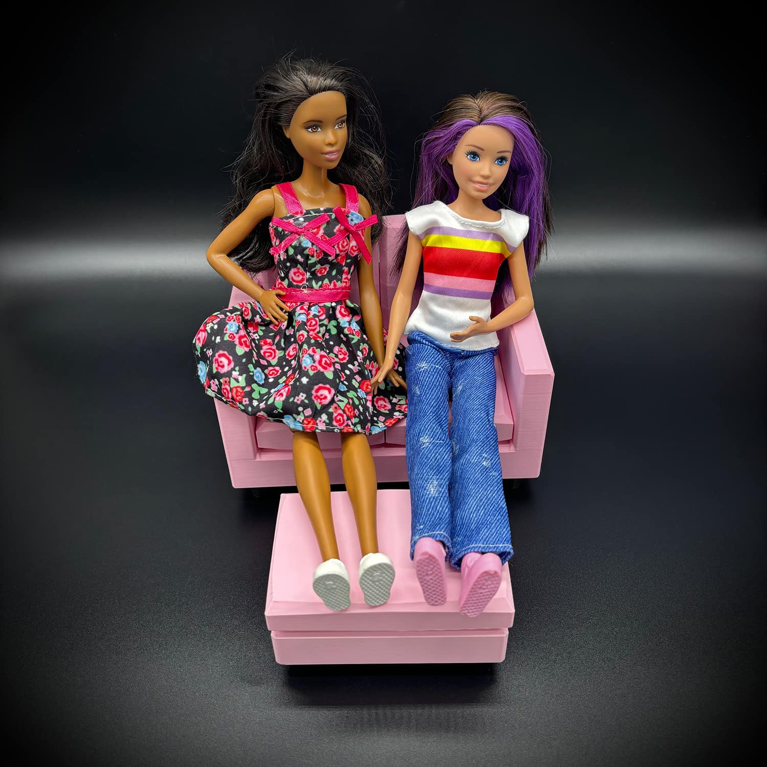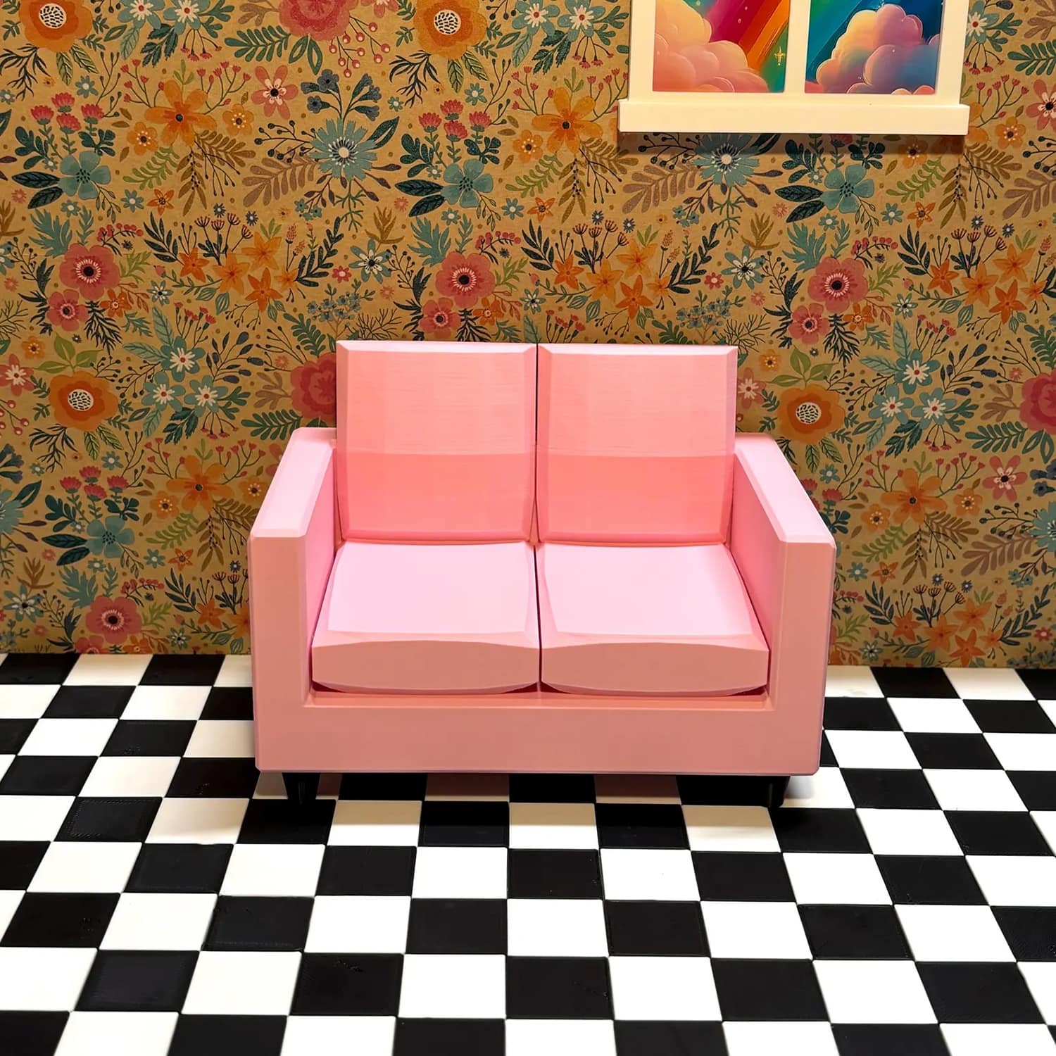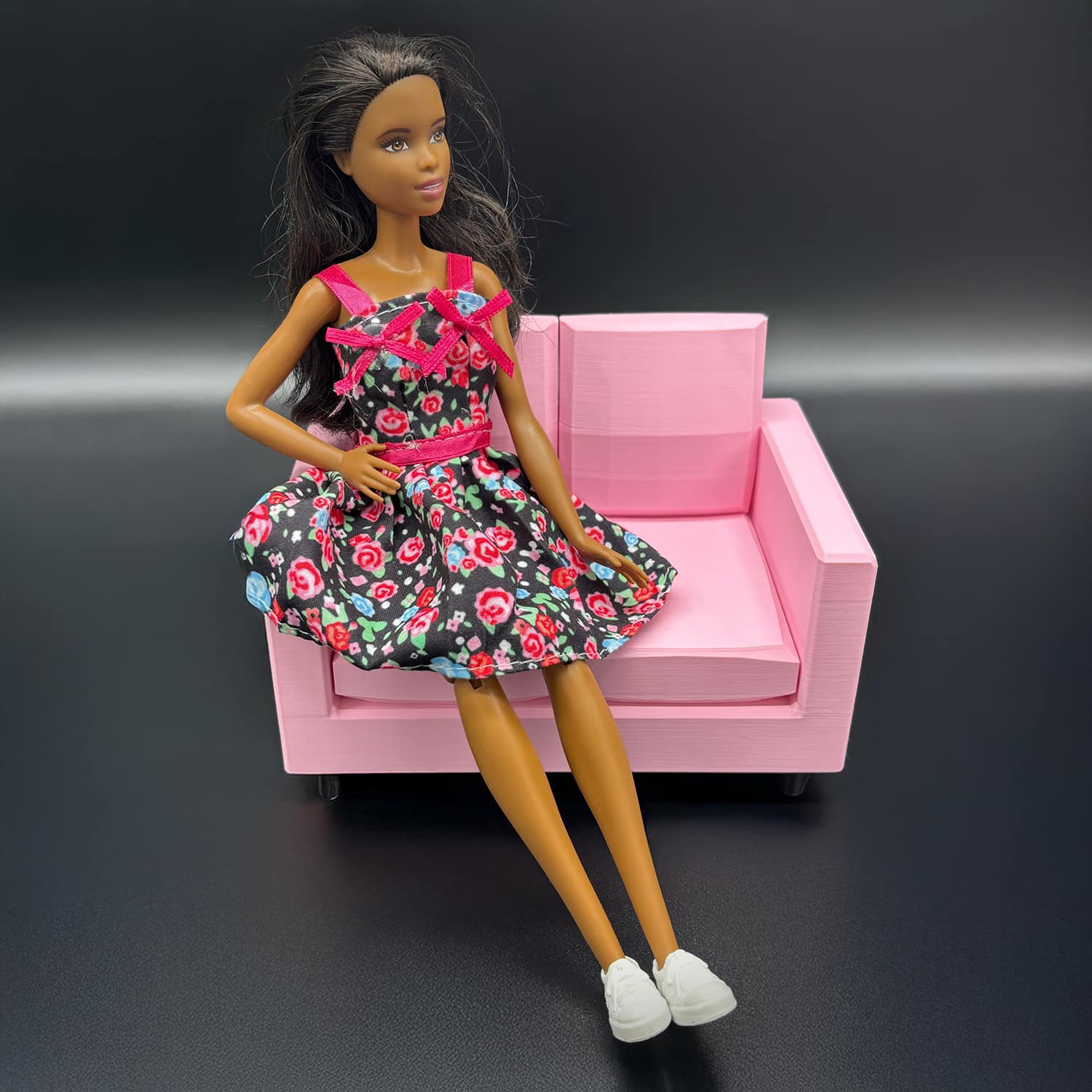 Crafted with meticulous attention using high-quality PLA filament it boasts a compact yet cozy design. Wide enough to comfortably seat two Barbie-sized dolls side-by-side. It mimics a classic loveseat profile, complete with supportive armrests and a gently sloped backrest for realistic reclining.