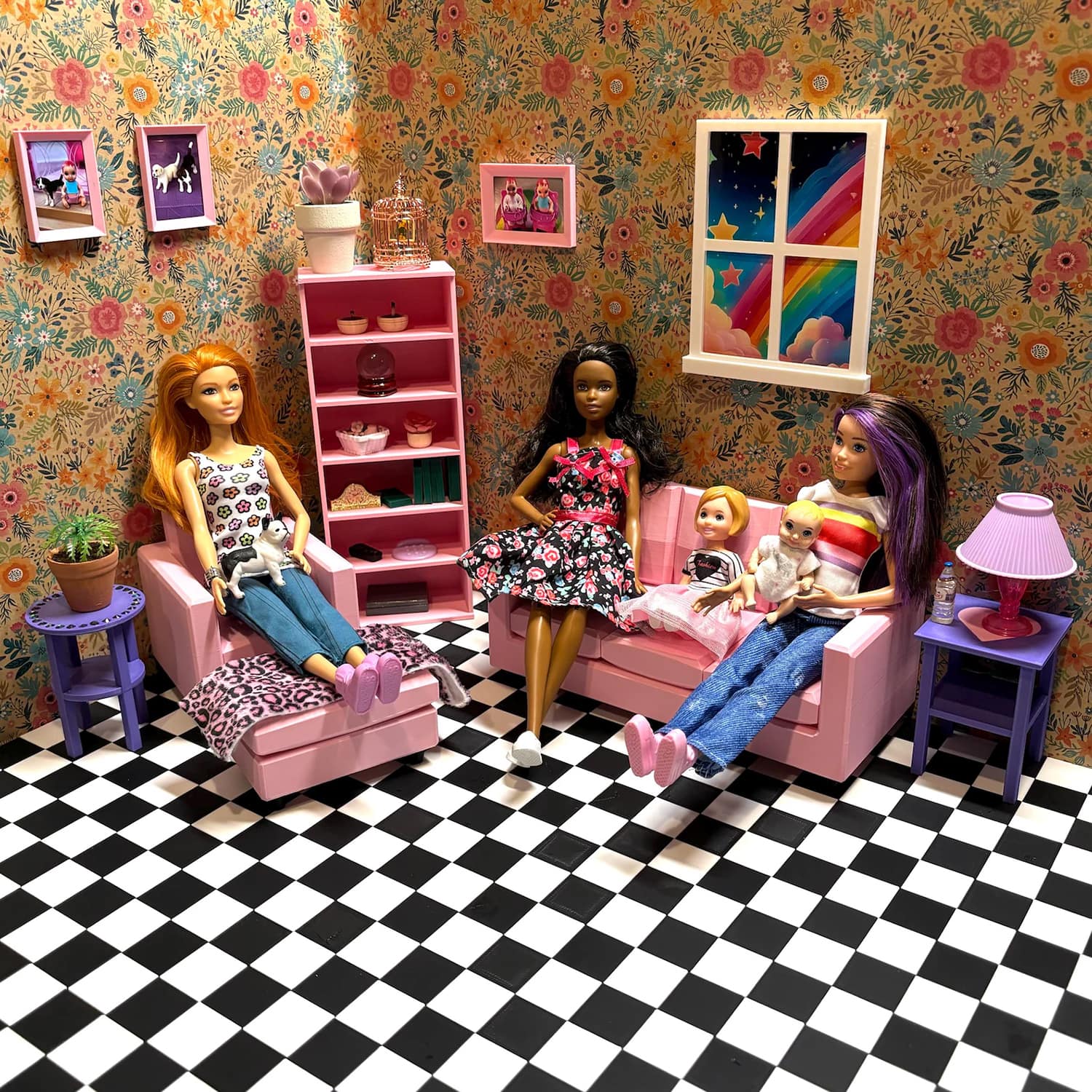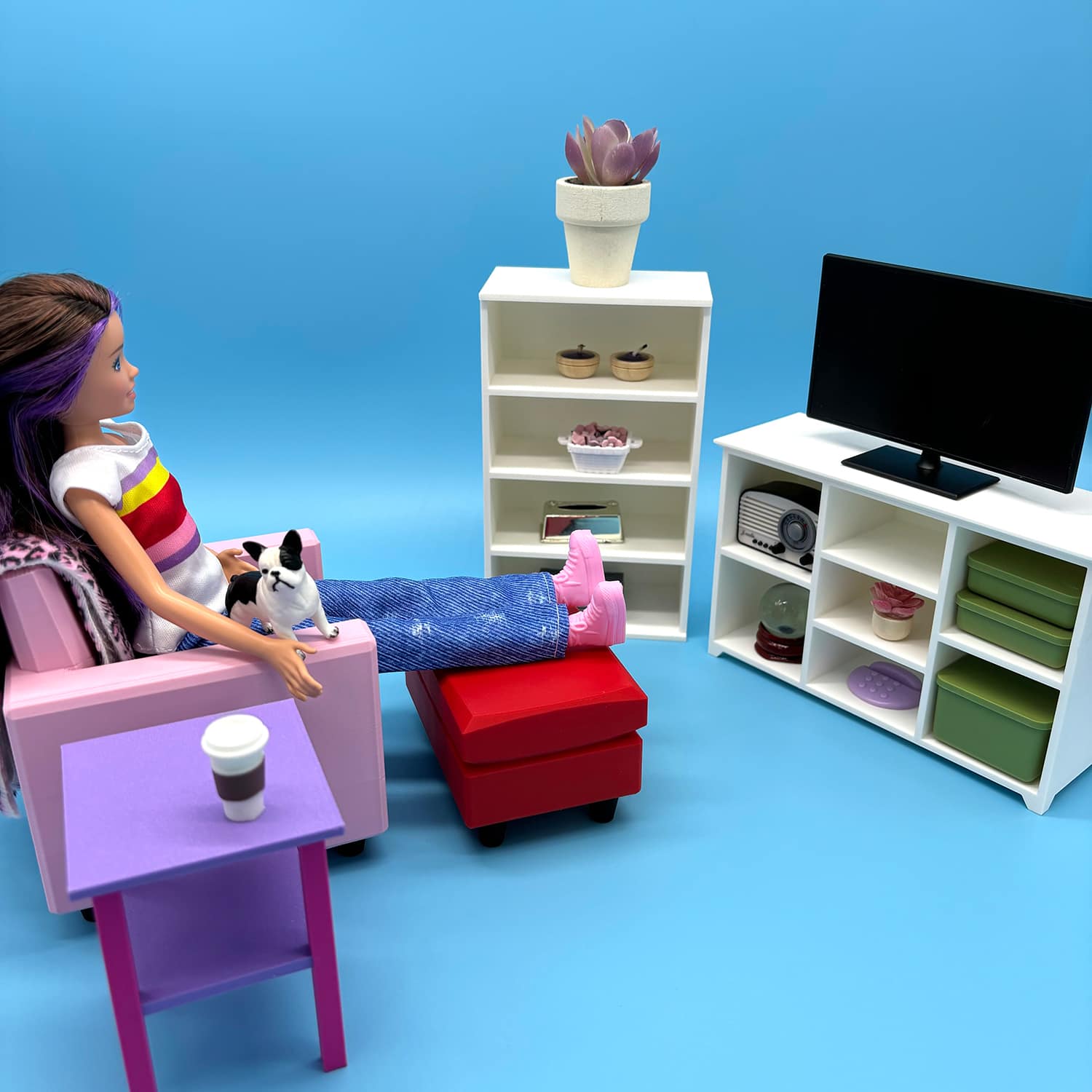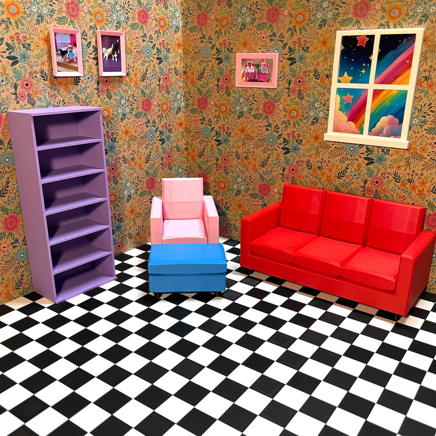 3D printed furniture and accessories for dollhouses in 1/6 scale.