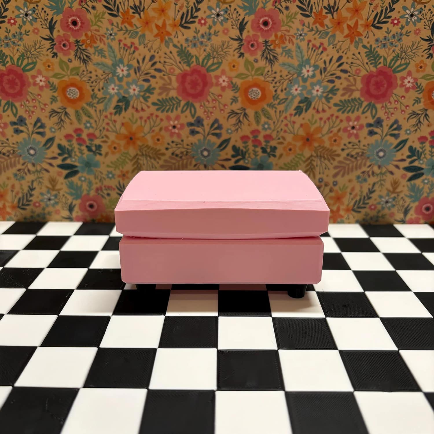 This adorable 1/6 scale ottoman is perfect for Barbie-sized + other 11″ – 12″ fashion dolls like Blythe, LOL OMG and Rainbow High dolls.