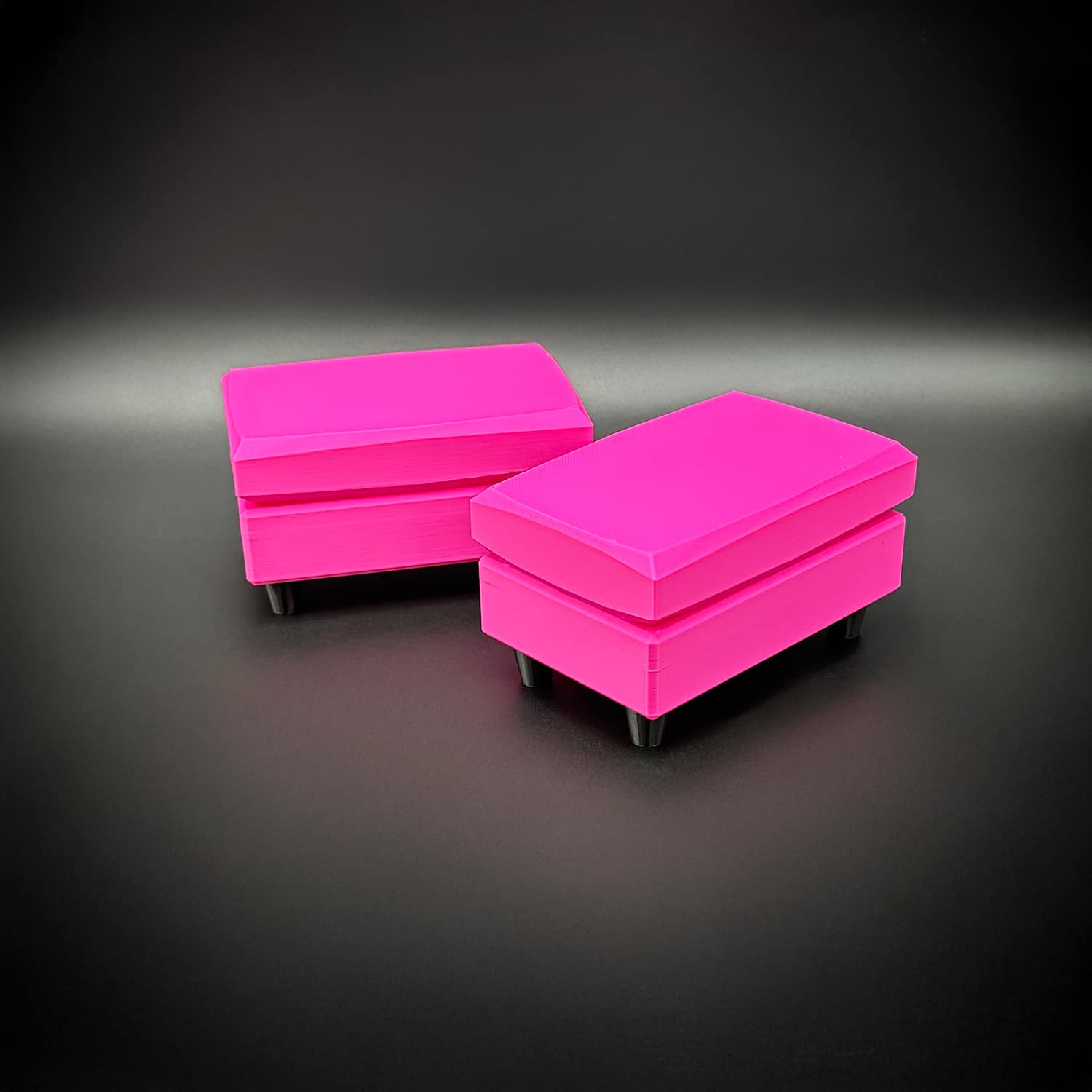 All of our furniture is imagined, designed and 3D printed in house using vibrant PLA Filament. PLA (polylactic acid) is an environmentally friendly plant-based biodegradable plastic. We strive to produce high quality prints using high end equipment but limitations in the print process may result in minor imperfections or blemishes on the finished product.
