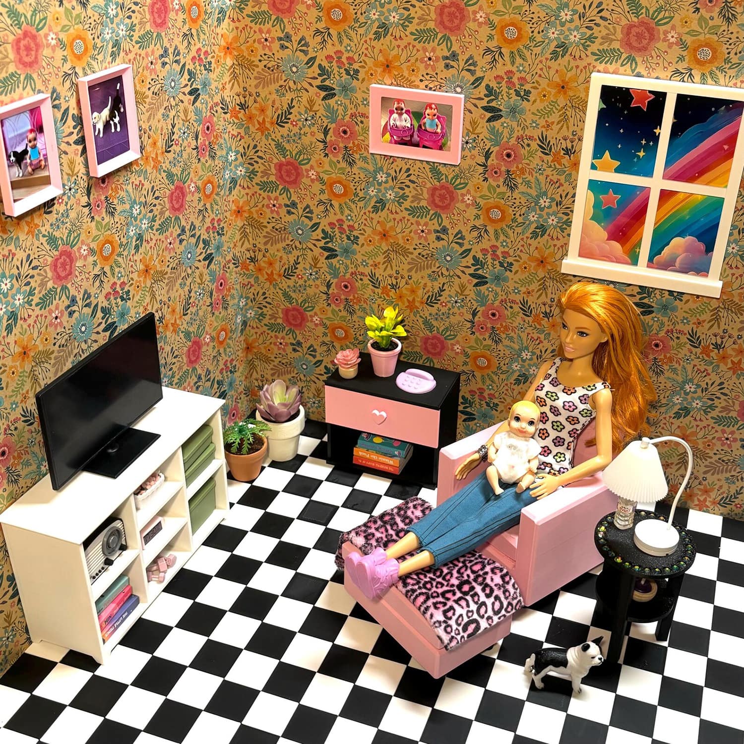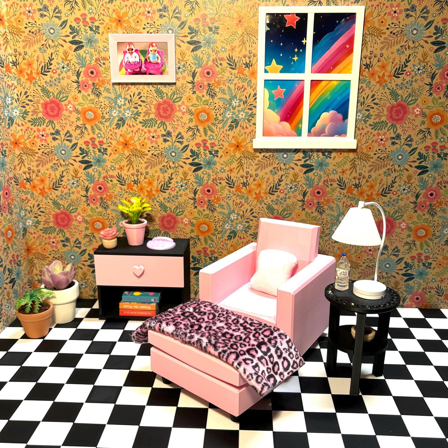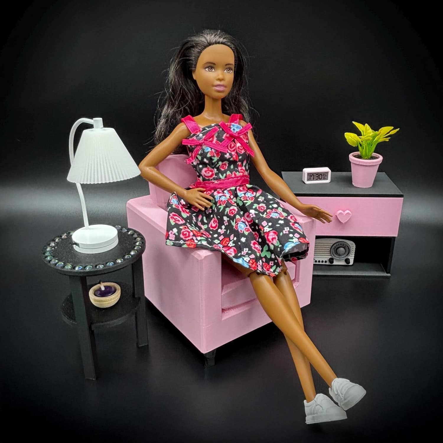 3D printed furniture and accessories for dollhouses in 1/6 scale.
