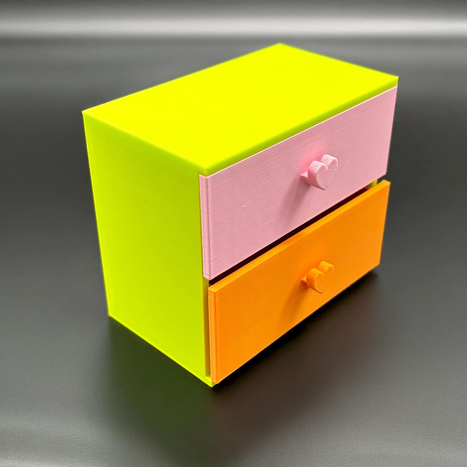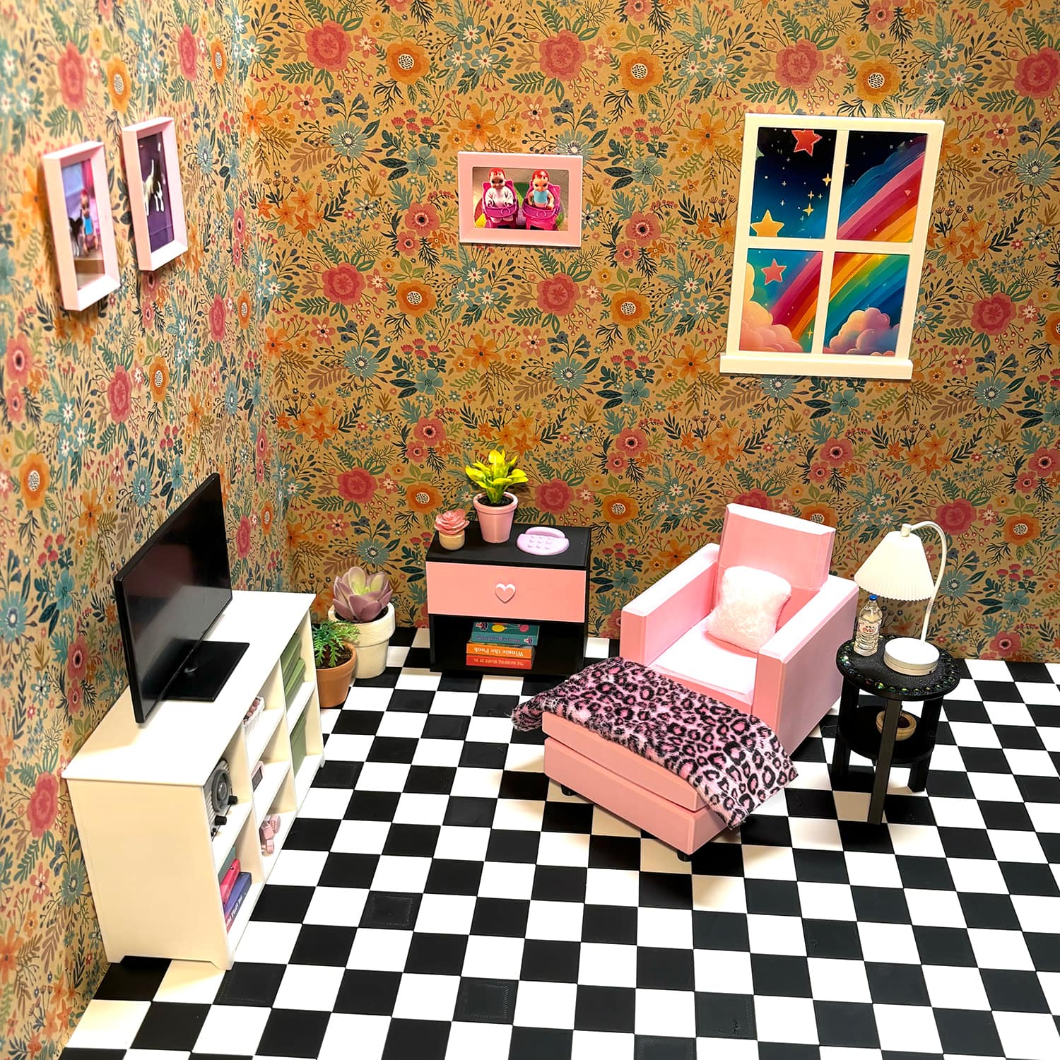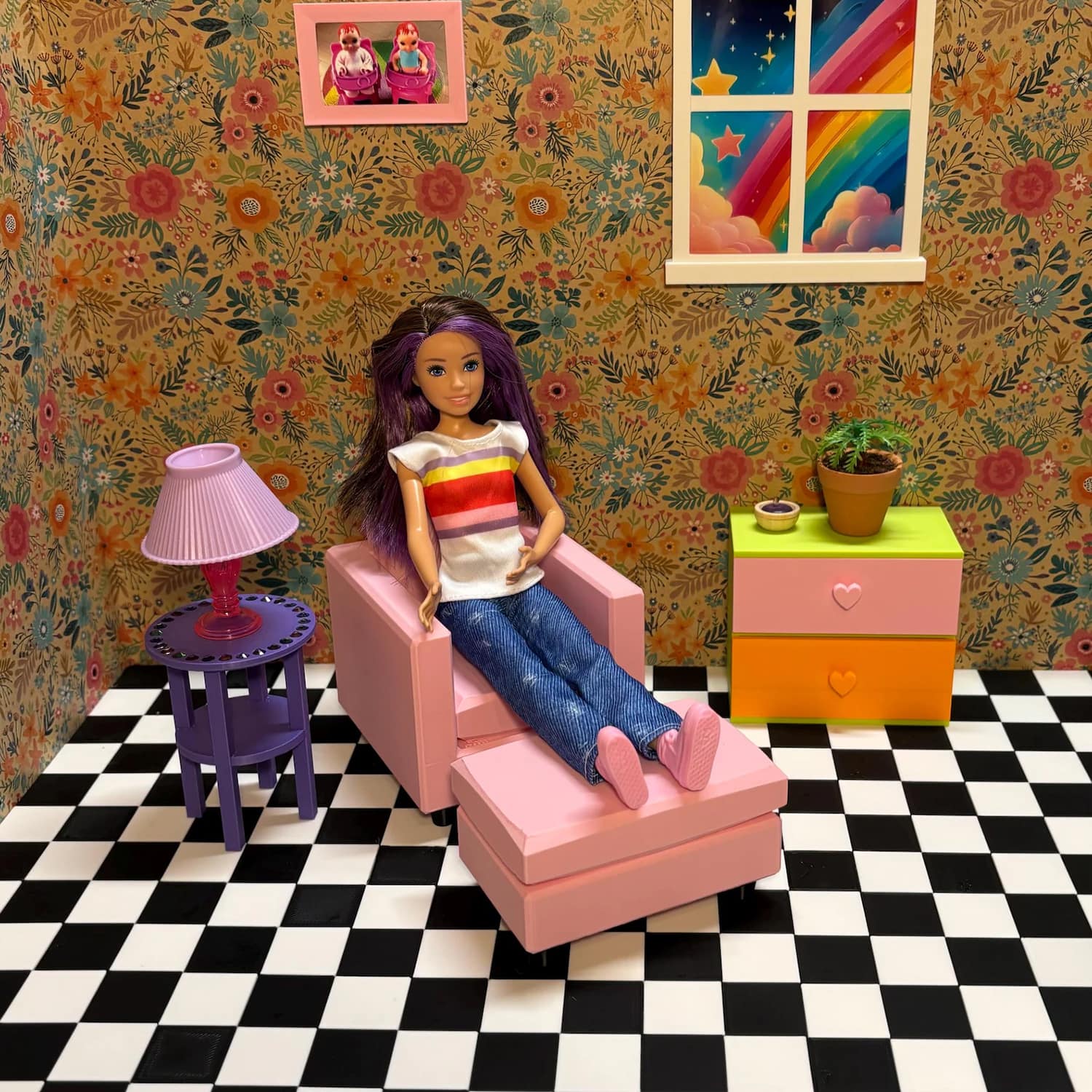 Two functional small drawers with heart pulls are designed for easy open/close action; no flimsy assembly required as it’s fully printed as one solid unit. Kids love filling the spacious drawers with their Barbie-sized wardrobe for imaginative role-play, while collectors appreciate the display-ready design that elevates 1:6 scale setups. Pair it with a matching bed or vanity for a complete bedroom scene—it’s versatile for modern, vintage, or fantasy Barbie-sized worlds.