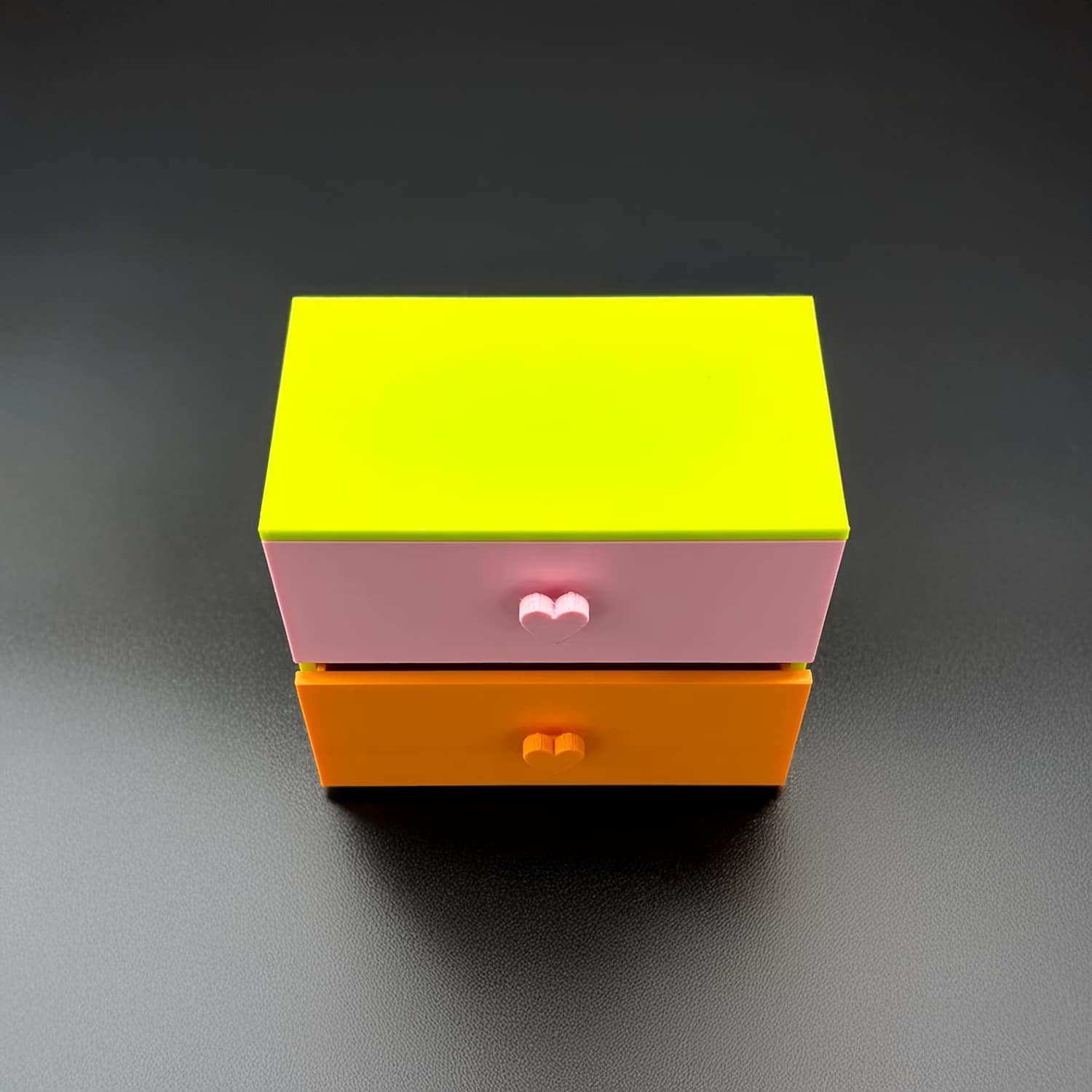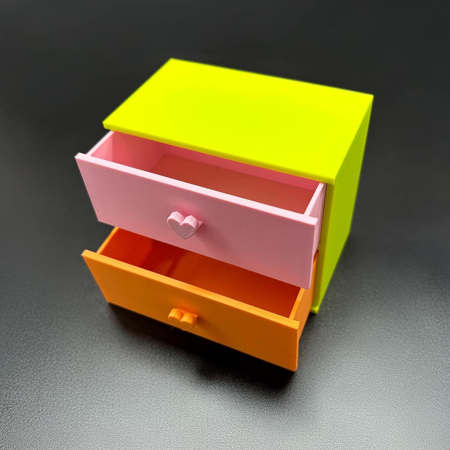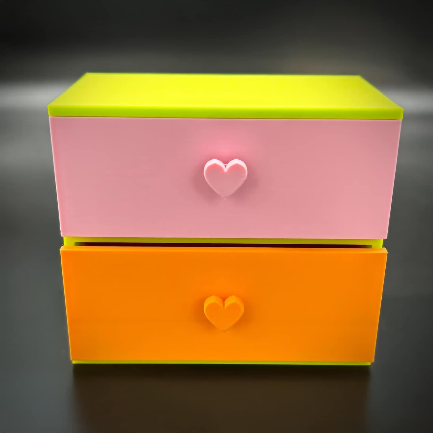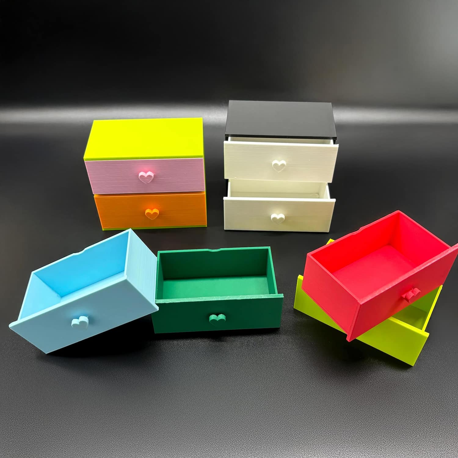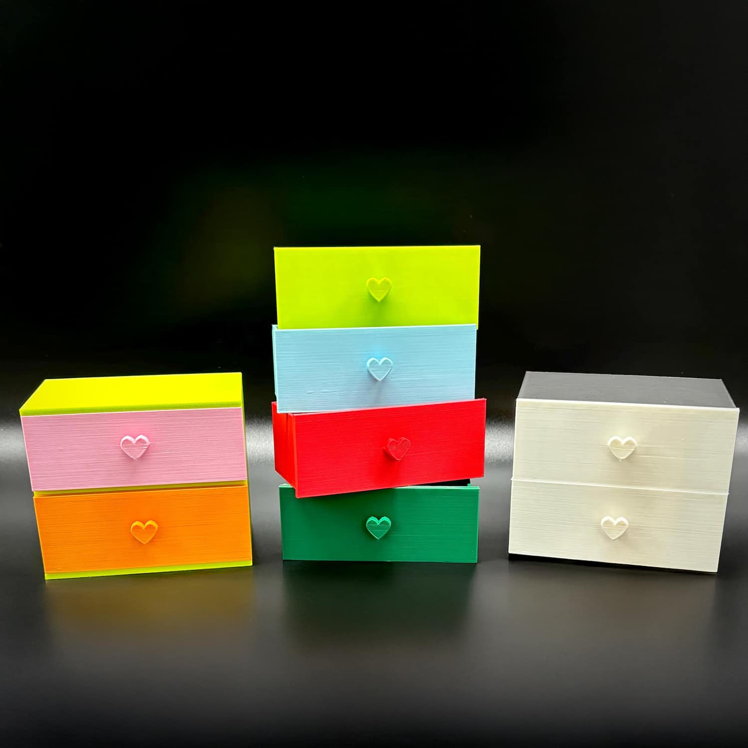 Listing is for the set of small drawers with heart pulls only. It is shown in light green with pink and magenta drawers. This is a custom made piece which requires 1-3 days to produce. *Large orders can take longer.