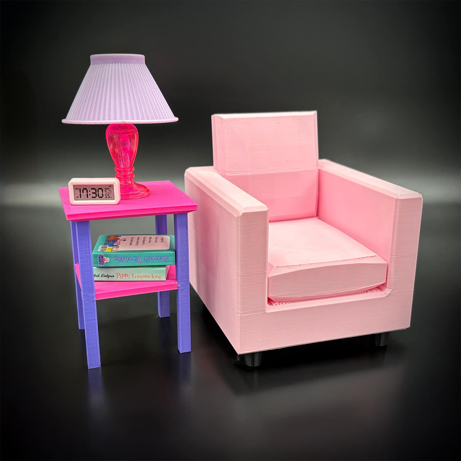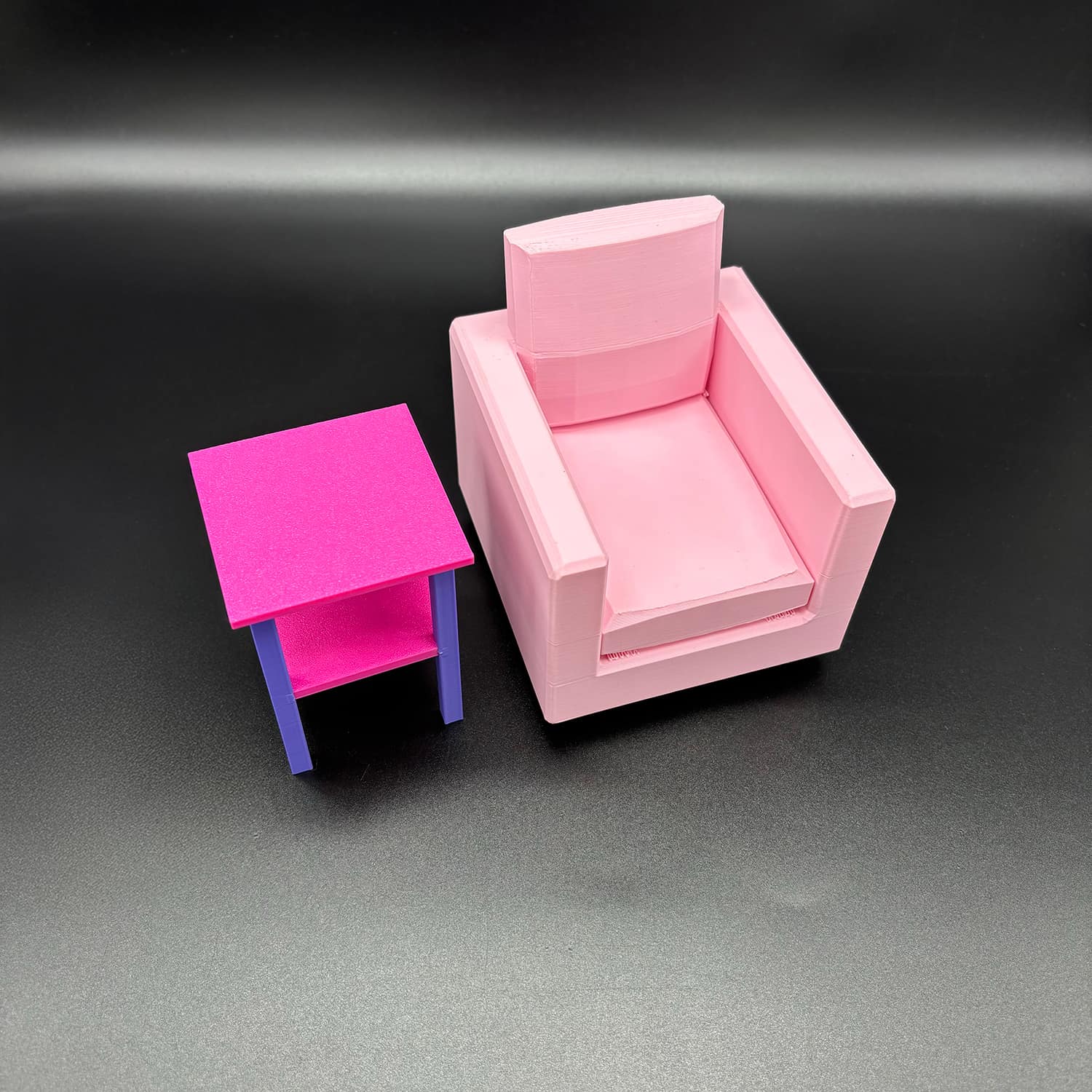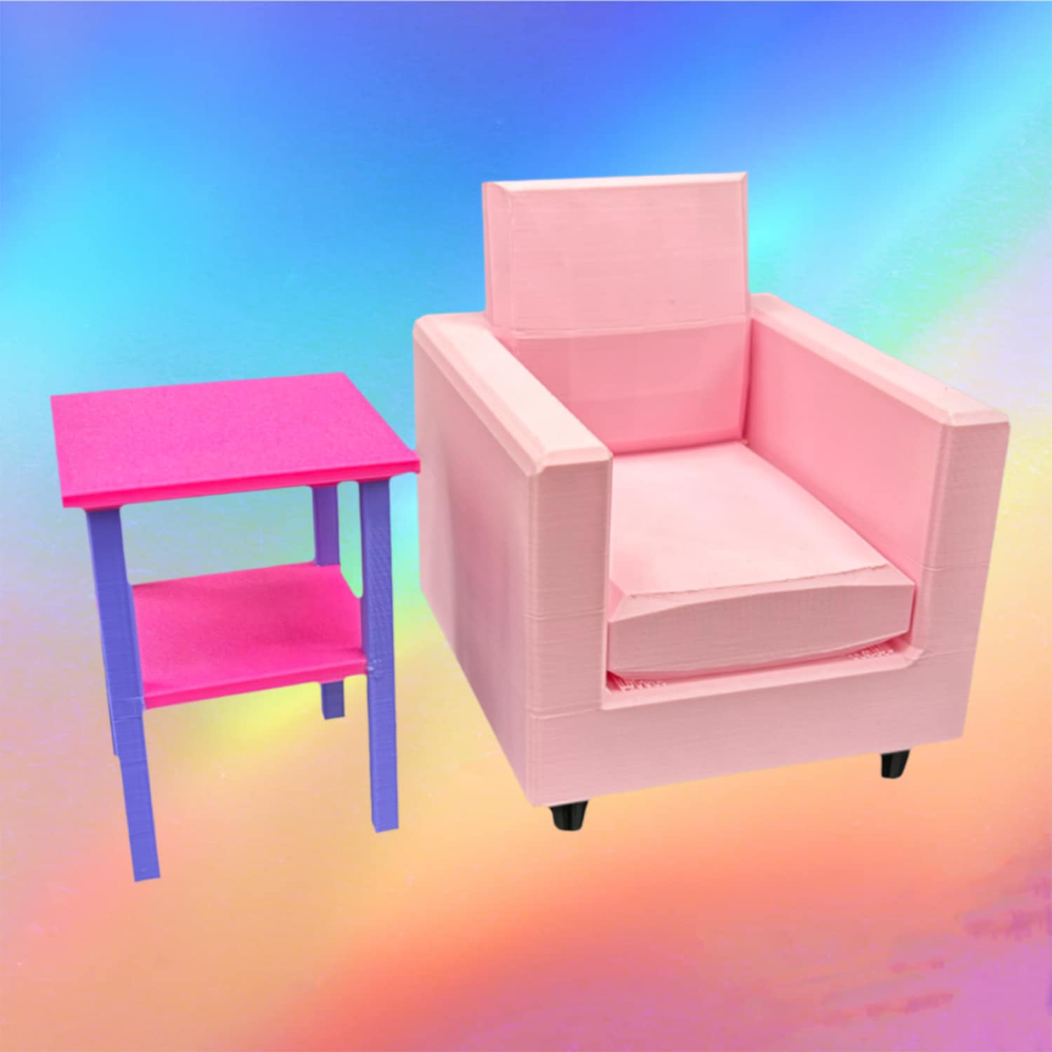 All of our furniture is imagined, designed and 3D printed in house using vibrant PLA Filament. PLA (polylactic acid) is an environmentally friendly plant-based biodegradable plastic. We strive to produce high quality prints using high end equipment but limitations in the print process may result in minor imperfections or blemishes on the finished product.